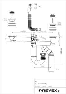P-loc 2-bowl with 70 mm strainers with rubber plugs. Flexible overflow pipe 180-570 mm and square overflow. Connections for dish washer. Outlet pipe Ø 40/50 mm for both wall and floor.